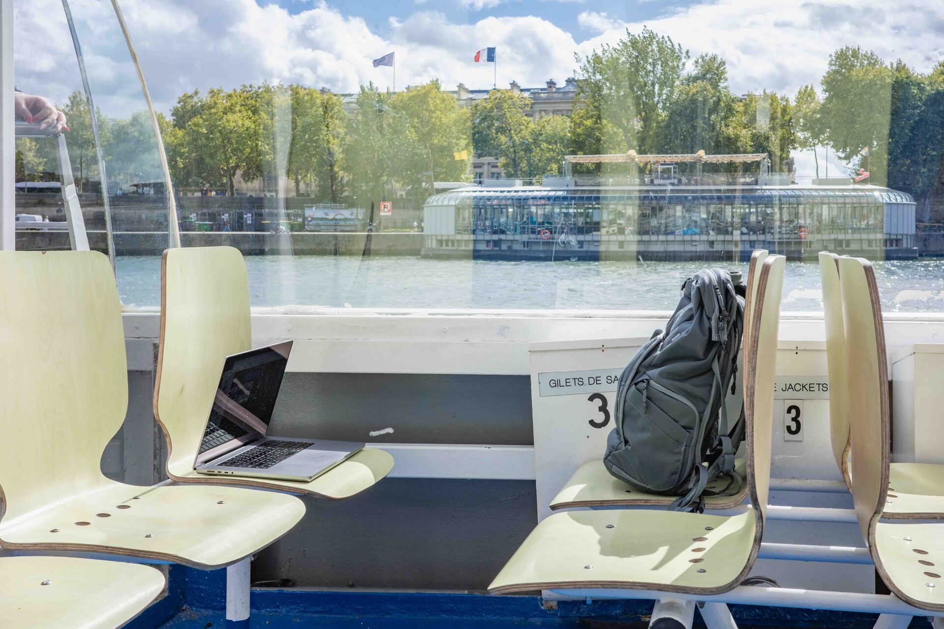 He spent the entire loop on the back deck, watching familiar landmarks from a new angle. The next day, I went back alone with my laptop and wrote most of this newsletter while floating past Notre-Dame. Not a terrible office.